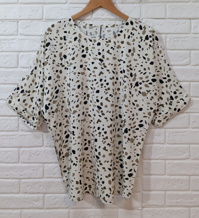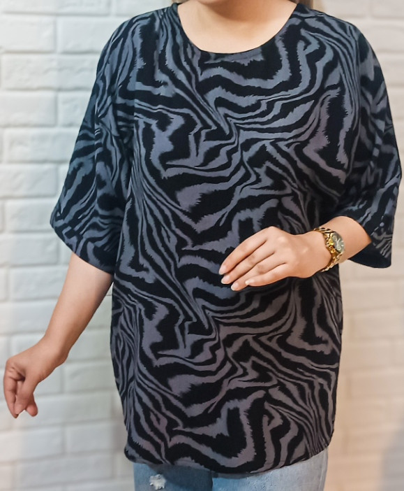 بلوز نخی آستین کیمونو یقه گرد